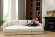 Hidden beneath the seat cushions is a generous built-in storage compartment, perfect for keeping extra blankets, pillows, or everyday essentials neatly tucked away and within reach.